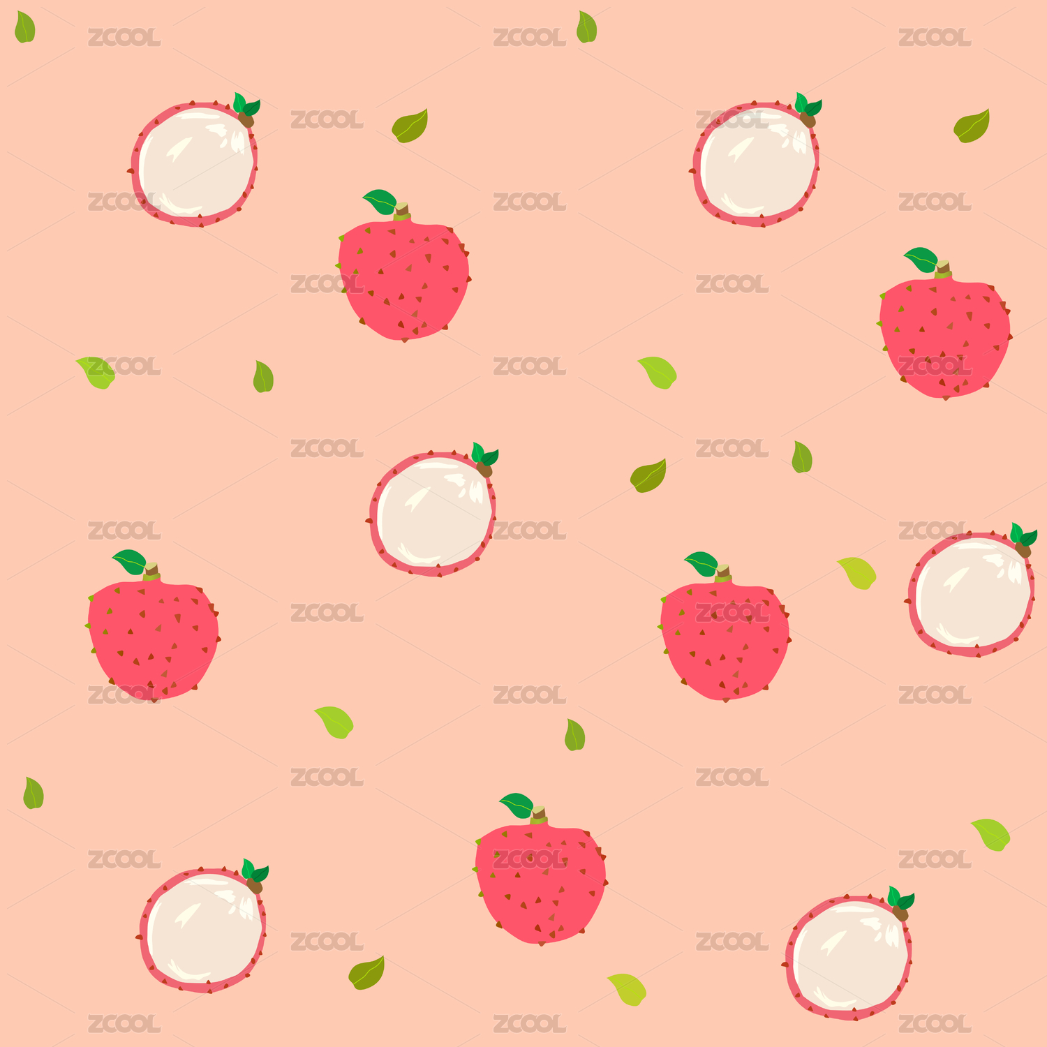 手绘卡通水果桃子循环图案