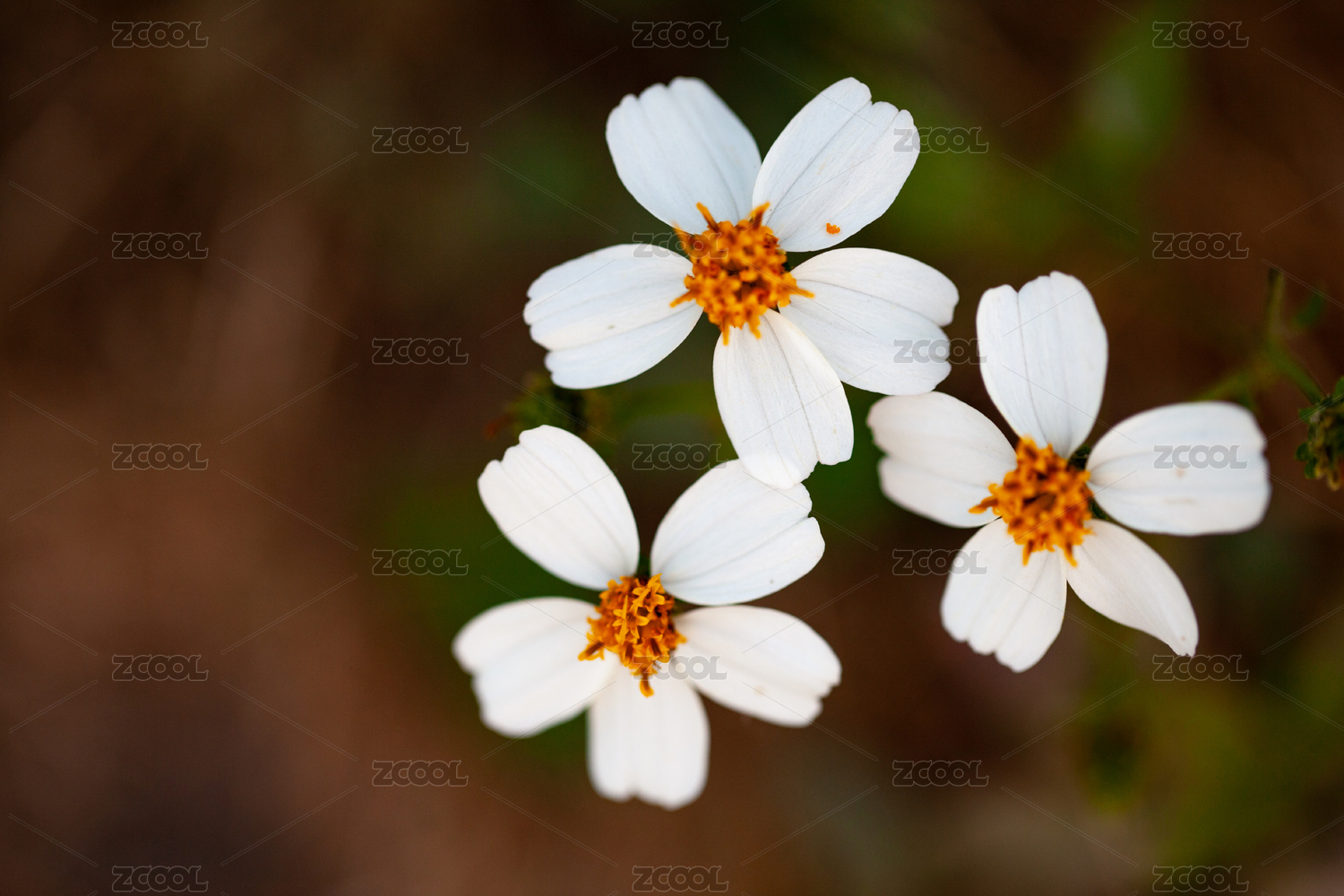 田园里盛开的几朵鲜花白色雏菊花卉特写