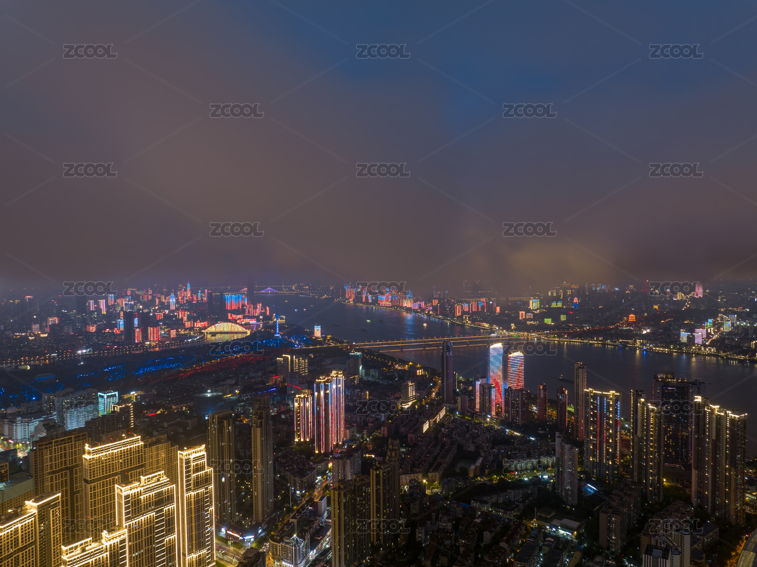 武汉城市地标天际线夜景风光