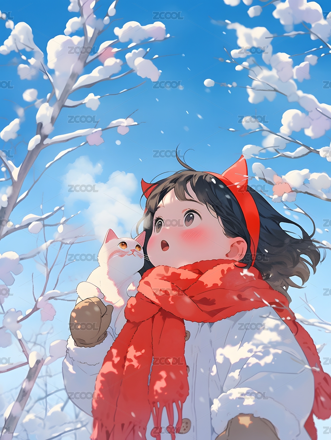 DXCZ202402,蓝天,天空,户外,寒冷,冬天,冬季,冬景,雪景,女孩