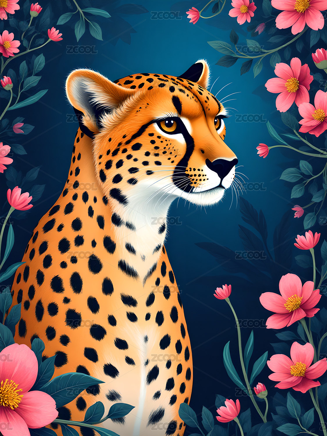 AIGCTA2024,金钱豹,猎豹,猛兽,凶猛,力量,黑豹,花豹,雪豹,粉色