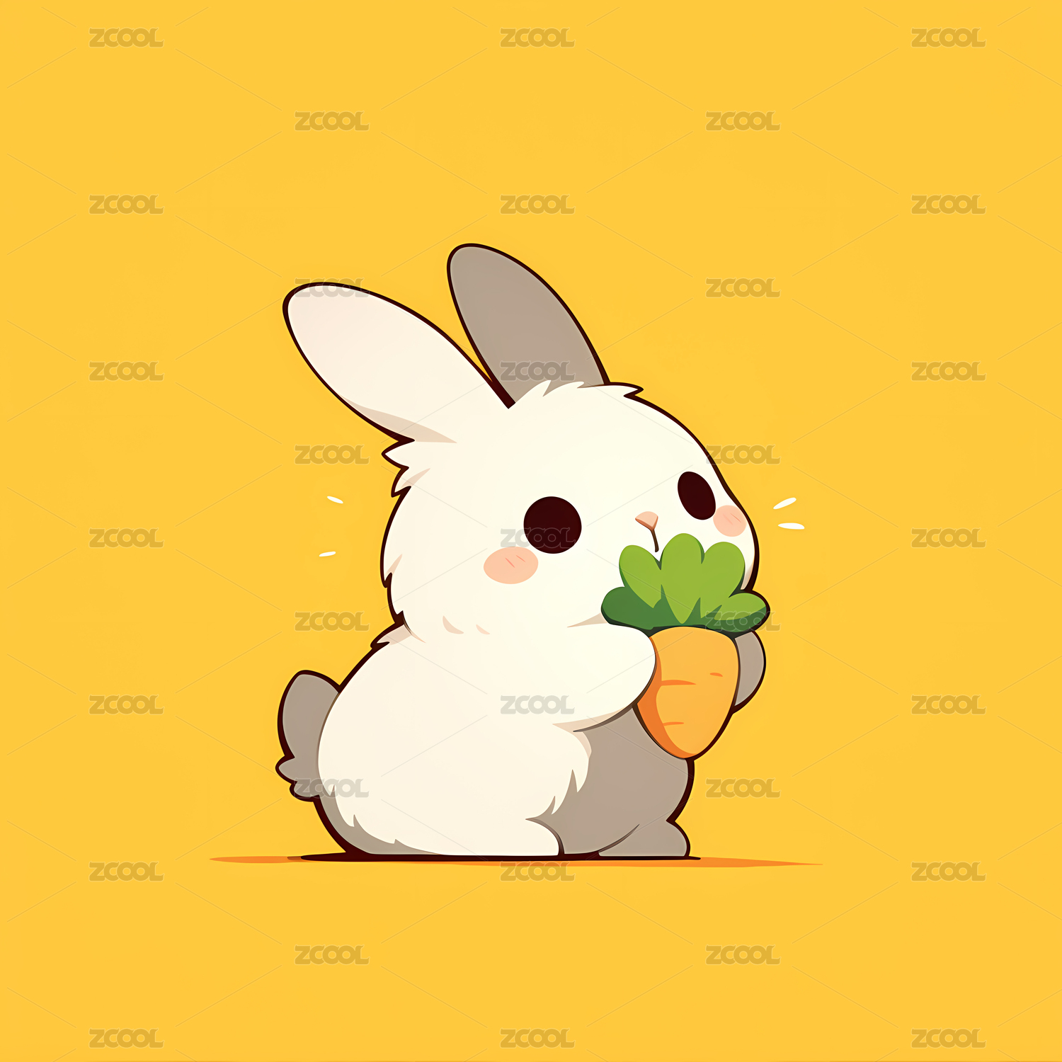 卡通简约呆萌兔子在玩荡秋千的插画场景