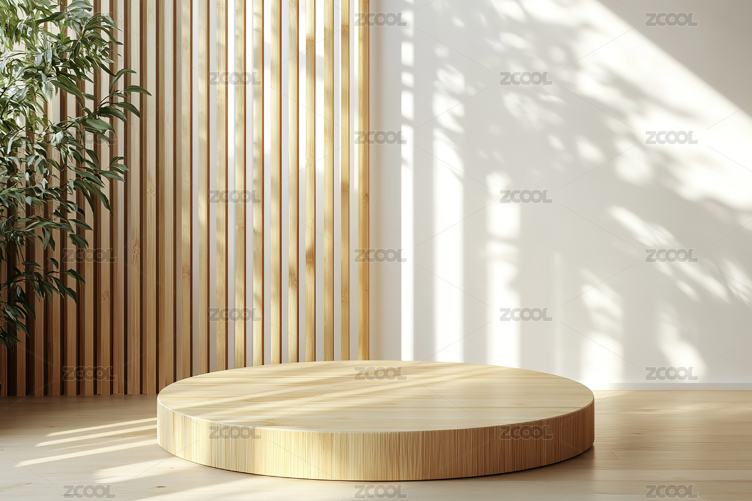 室内,绿植,木质,展台,光影,效果,简约,风格,自然,氛围