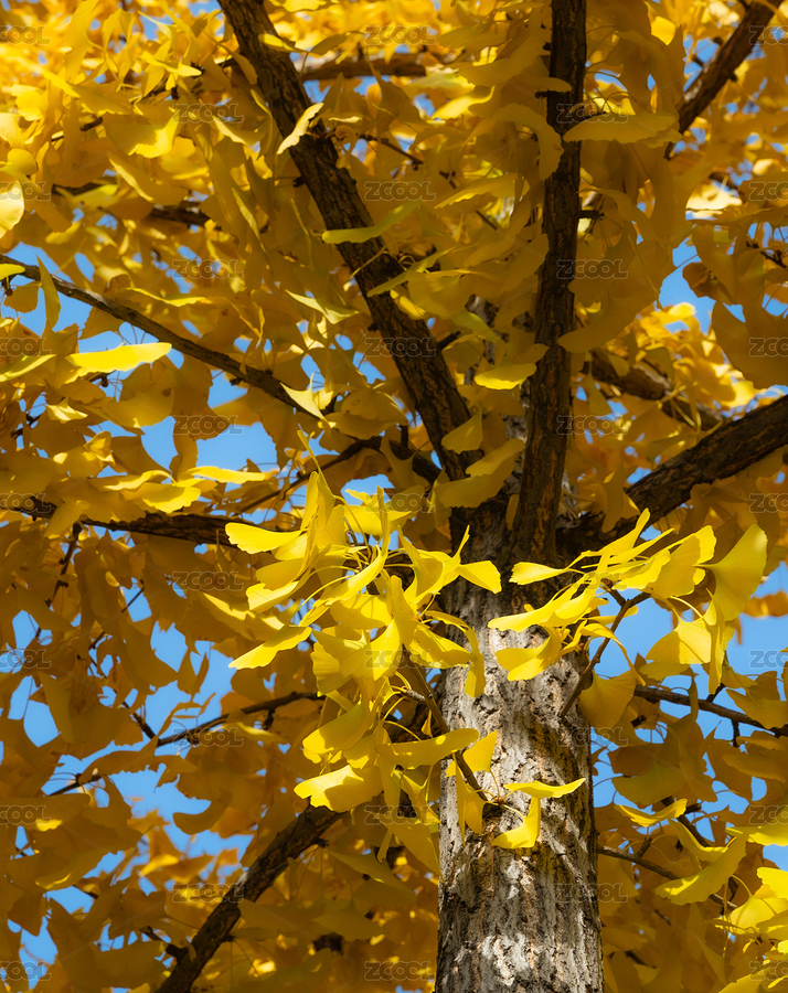 中国山东枣庄山亭区龙泉寺古银杏树叶片金黄