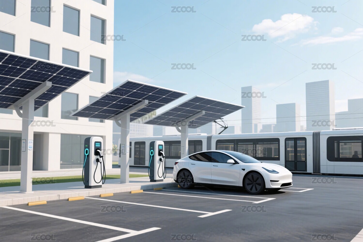以汽车为背景的现代电动汽车充电站