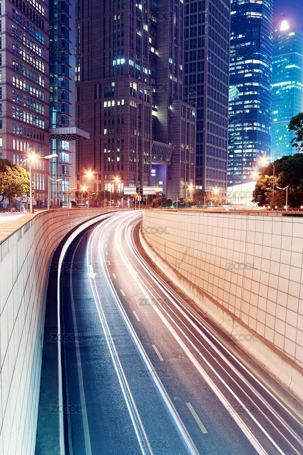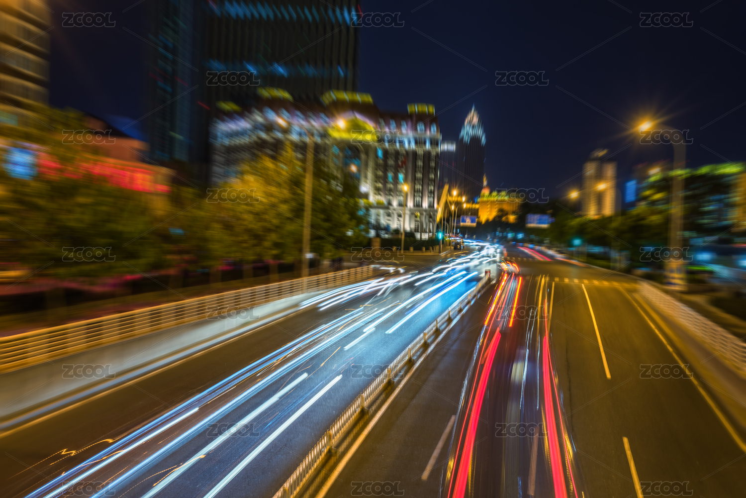 上海城市夜景飞驰的汽车尾灯形成的光的轨迹