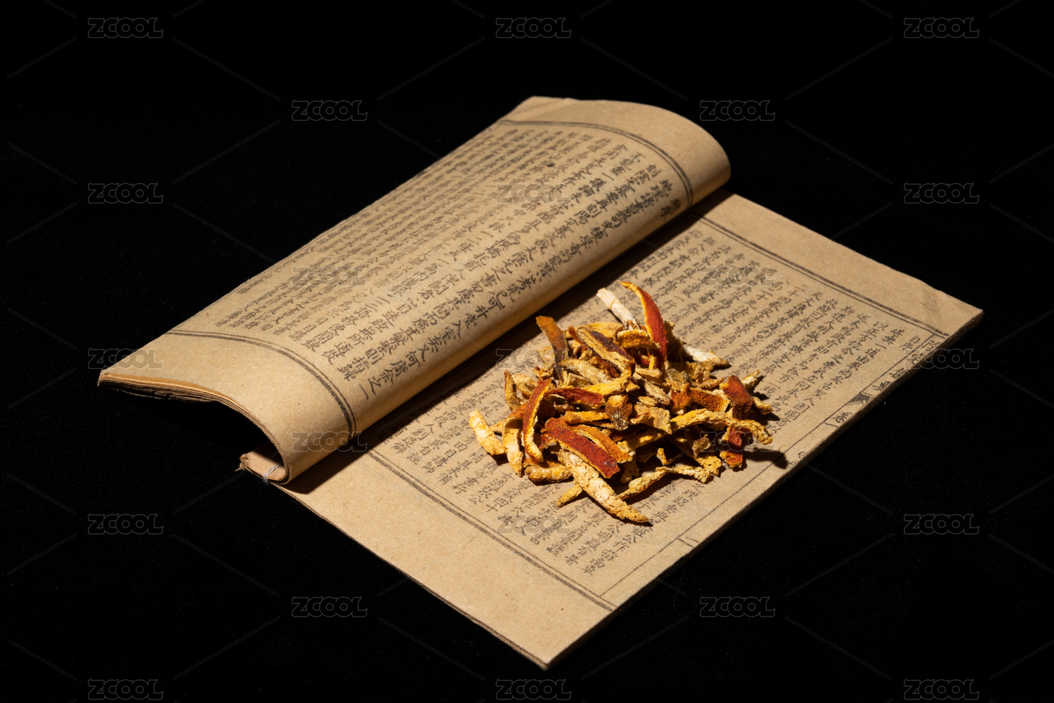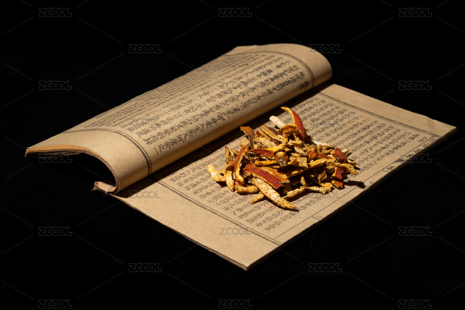 中药陈皮黑底图