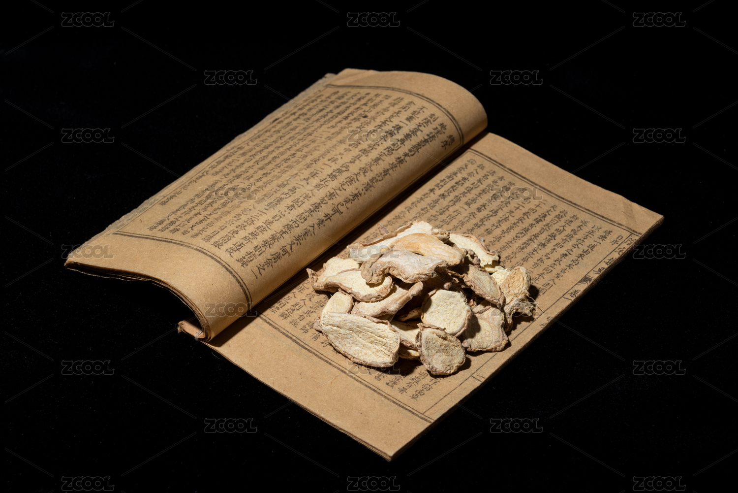 中药干姜黑底图