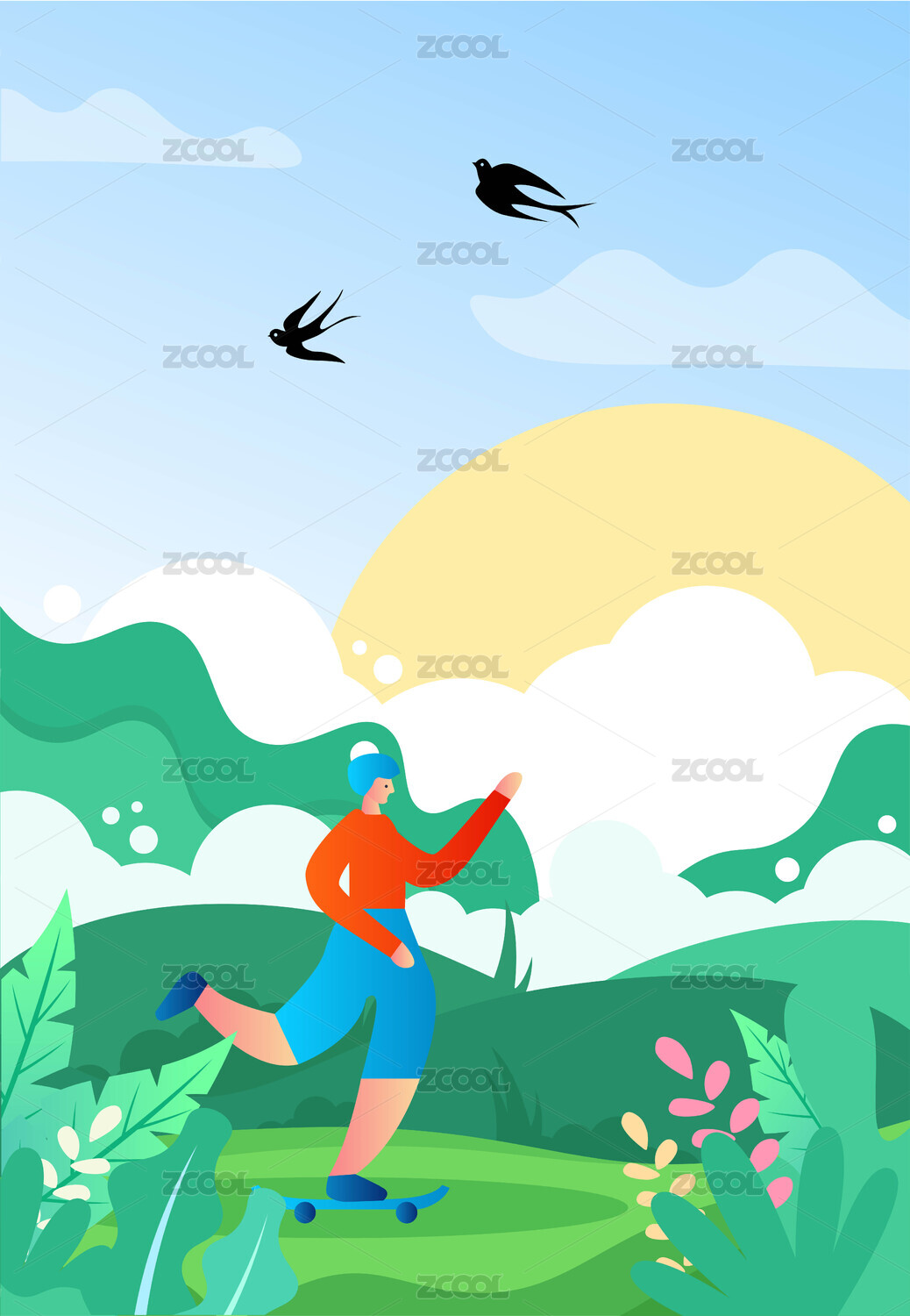 卡通春季春天立春节气节日户外郊游矢量渐变