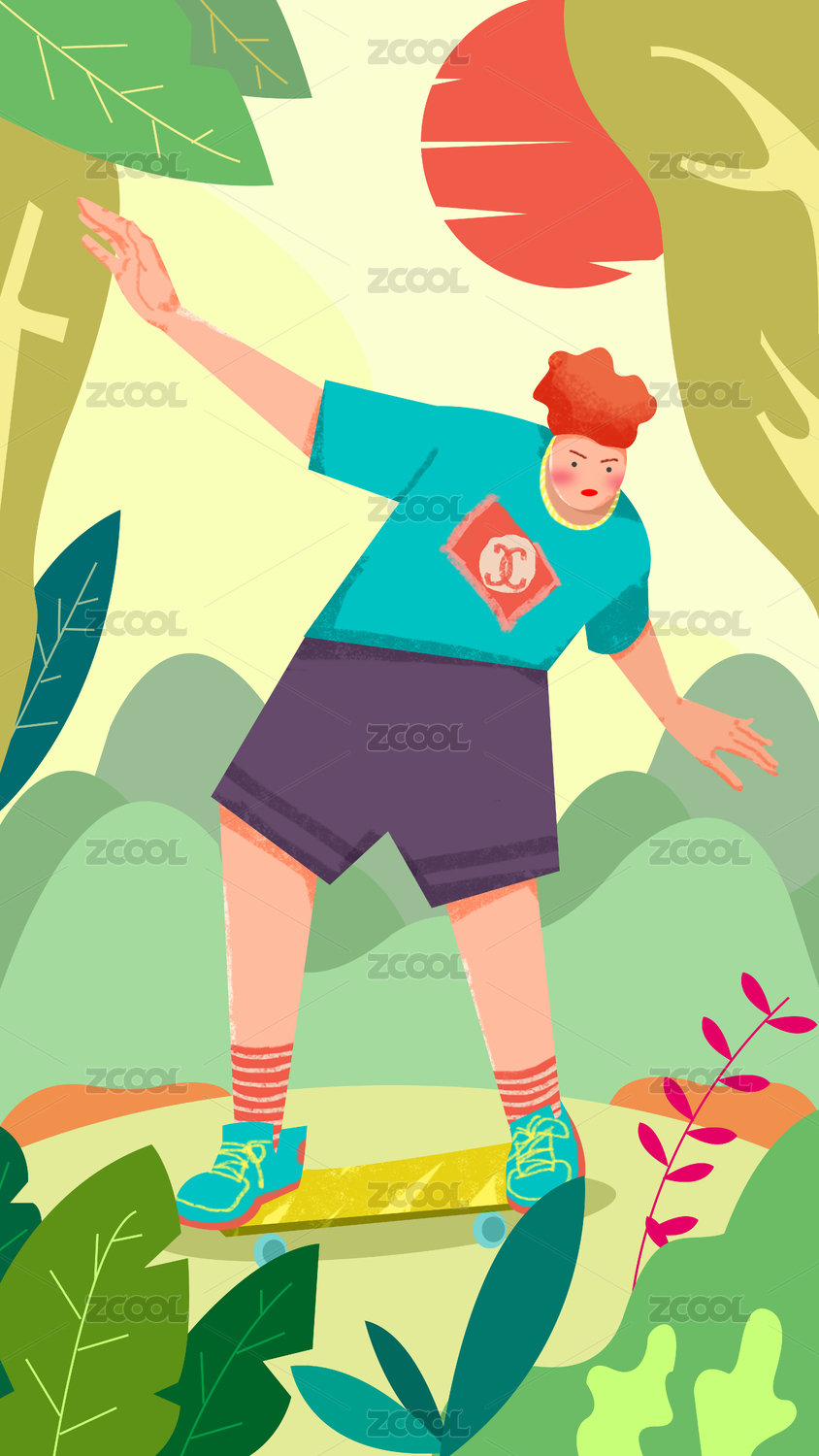 卡通人物夏季踏青旅游登山风景出行矢量插画