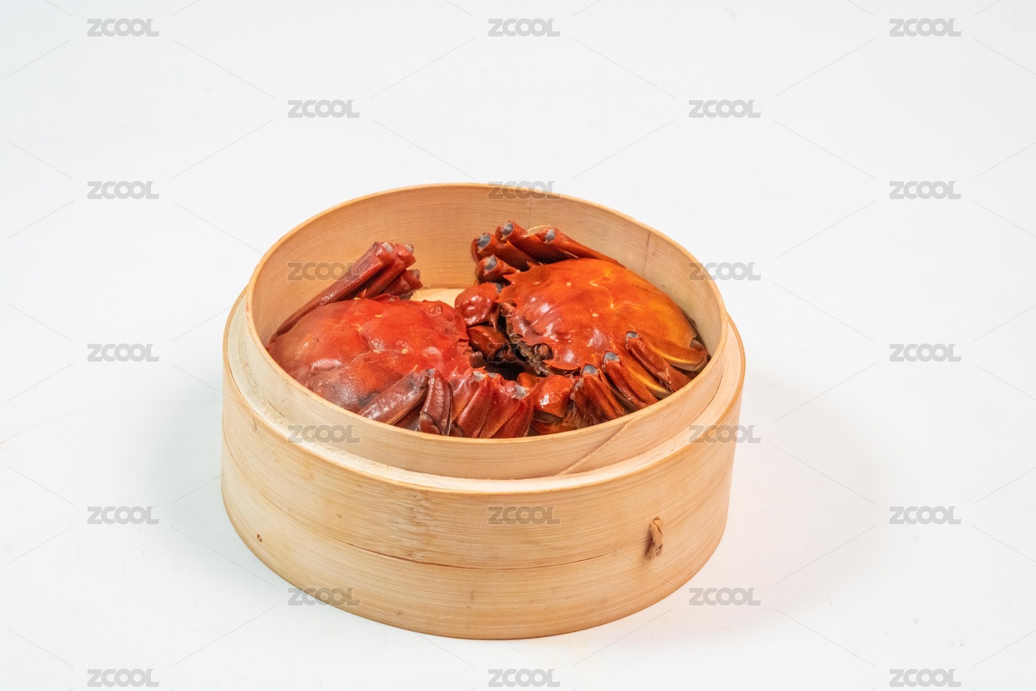 中秋节俯拍白色背景笼屉里的红色大闸蟹