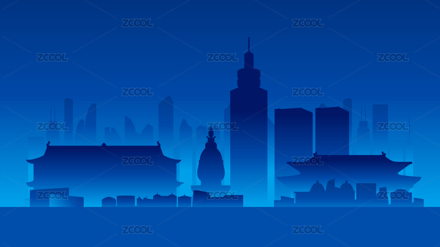 城市,建筑,蓝色,科技,建筑群,地标,标志,剪影,简约,渐变