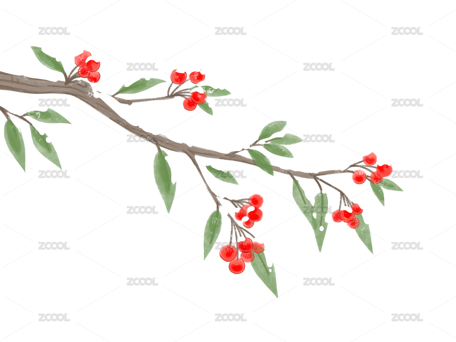 水果,古风,国风,谷雨,樱桃,夏天,春天,立夏,水彩,水墨