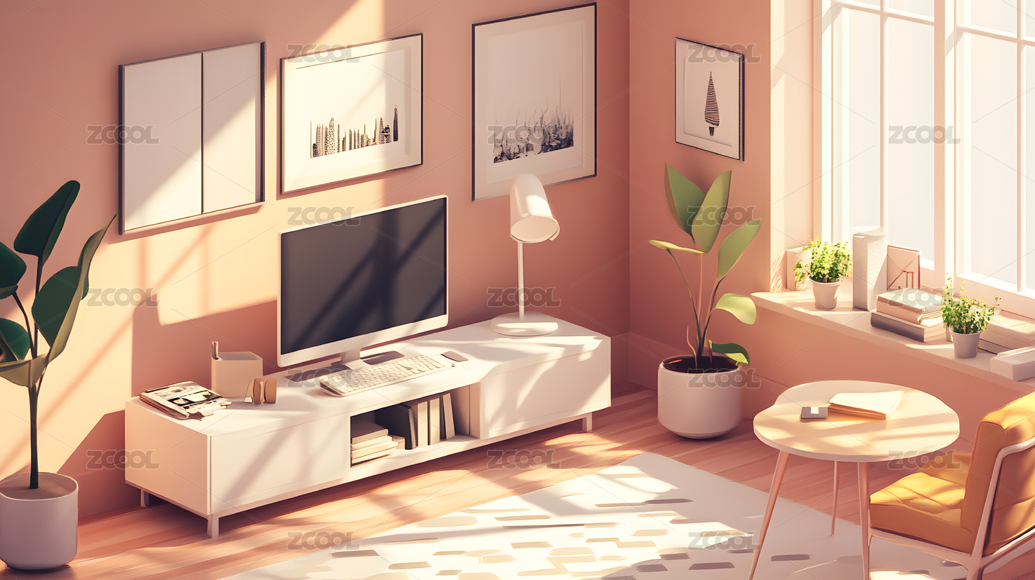 卡通,室内,家具,场景,住宅内部,桌子,现代,沙发,电商,温馨