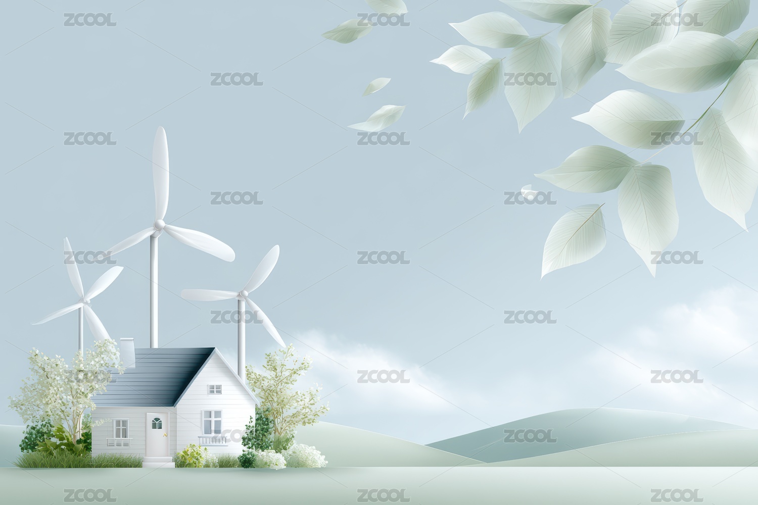 AIGC202405,新能源,风能,环保,绿色,插画,能源,风车,发电