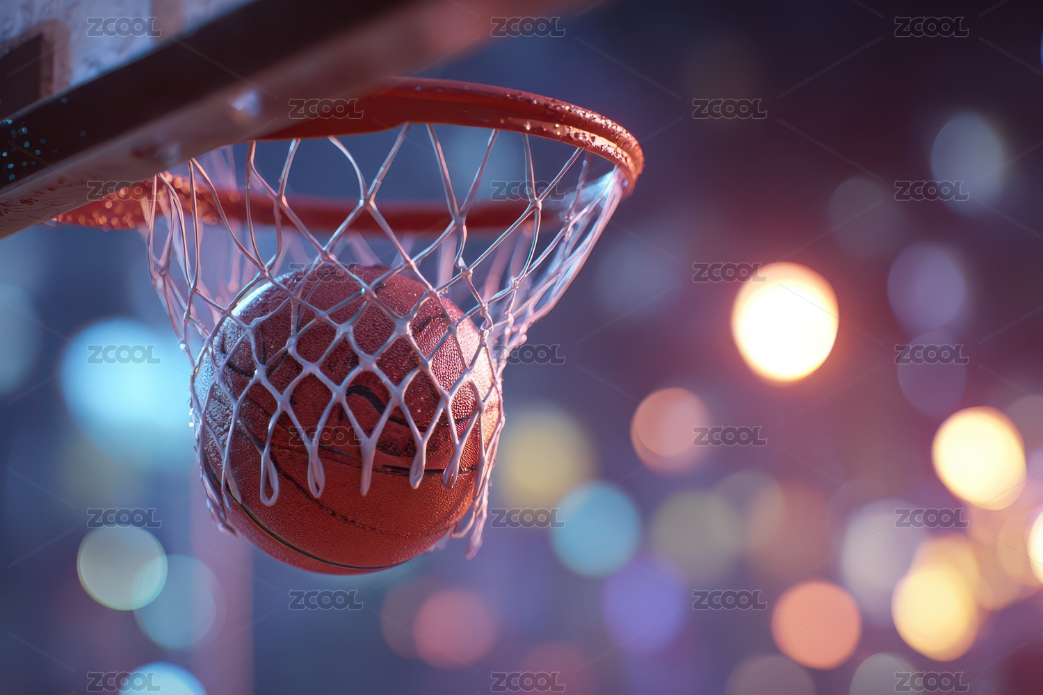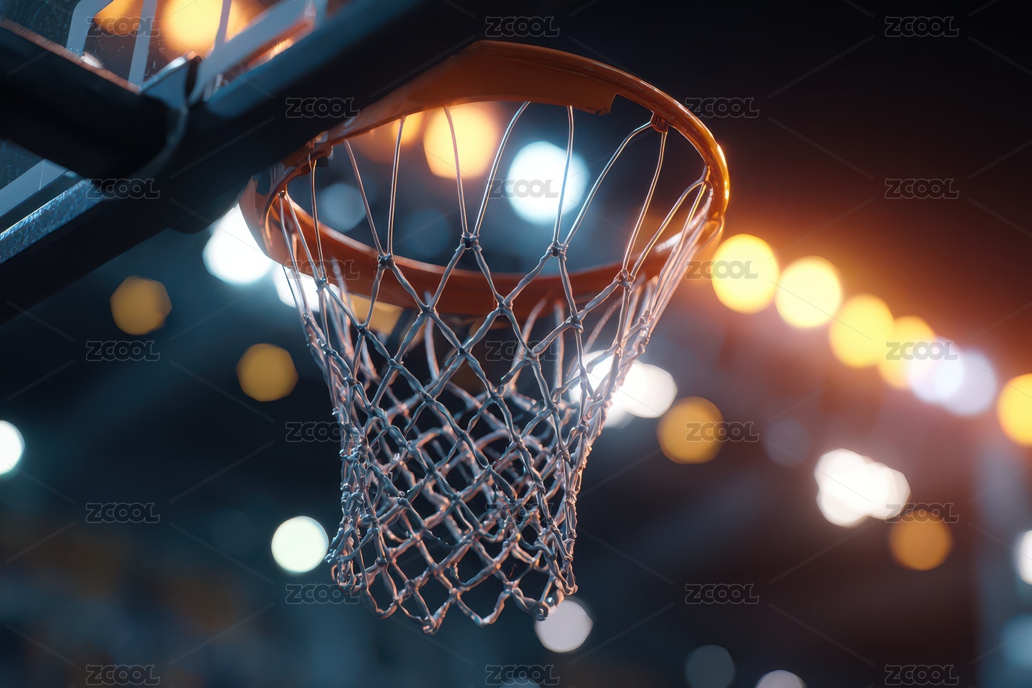 篮球网篮下的灯光背景