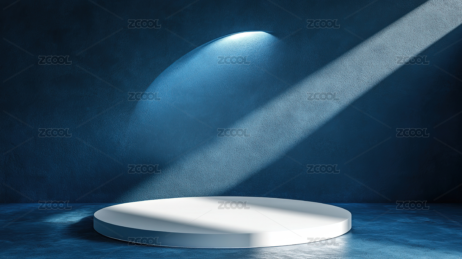 蓝色墙面圆形白色展台