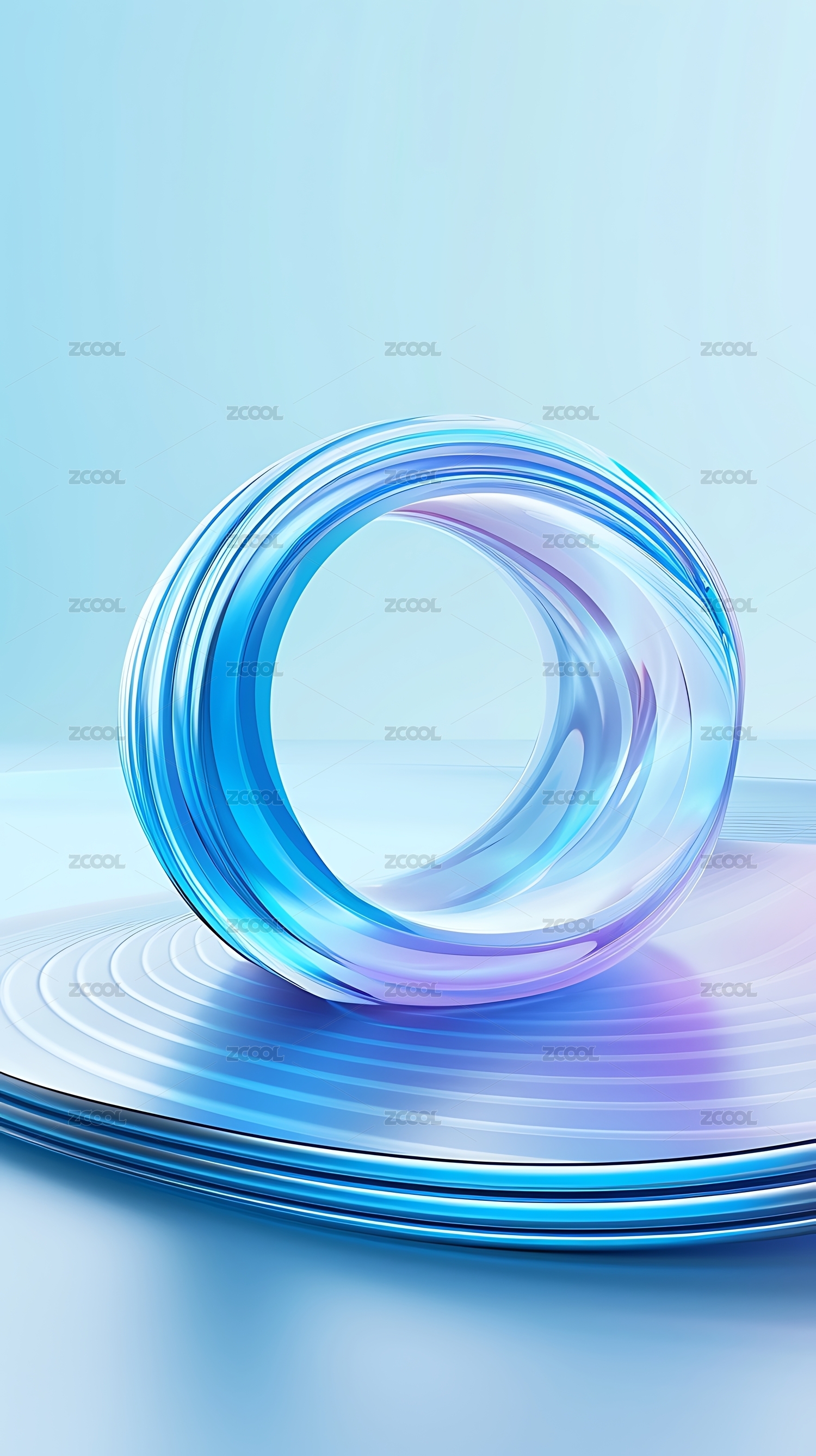 清新透明蓝底抽象浅蓝色圆环3D立体插画