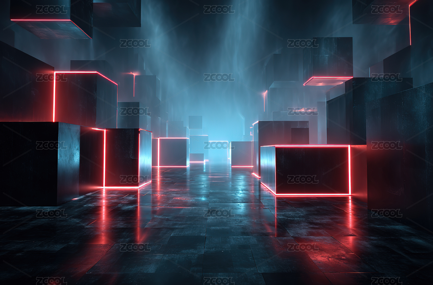 霓虹立方体科技感场景