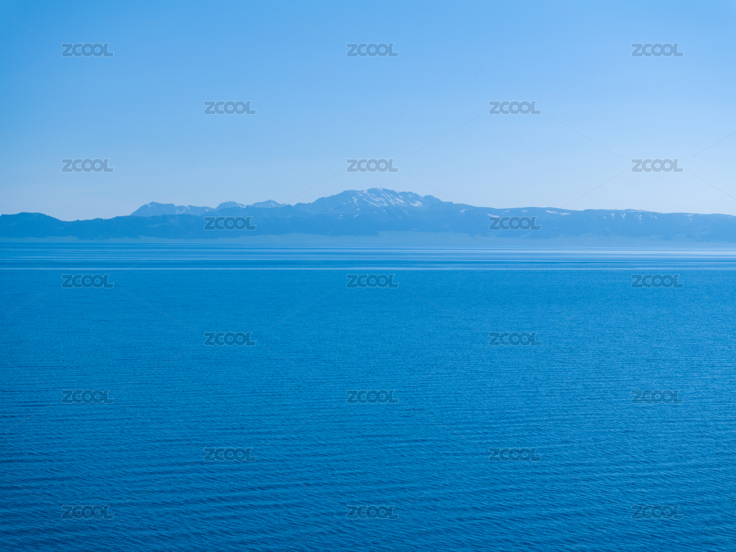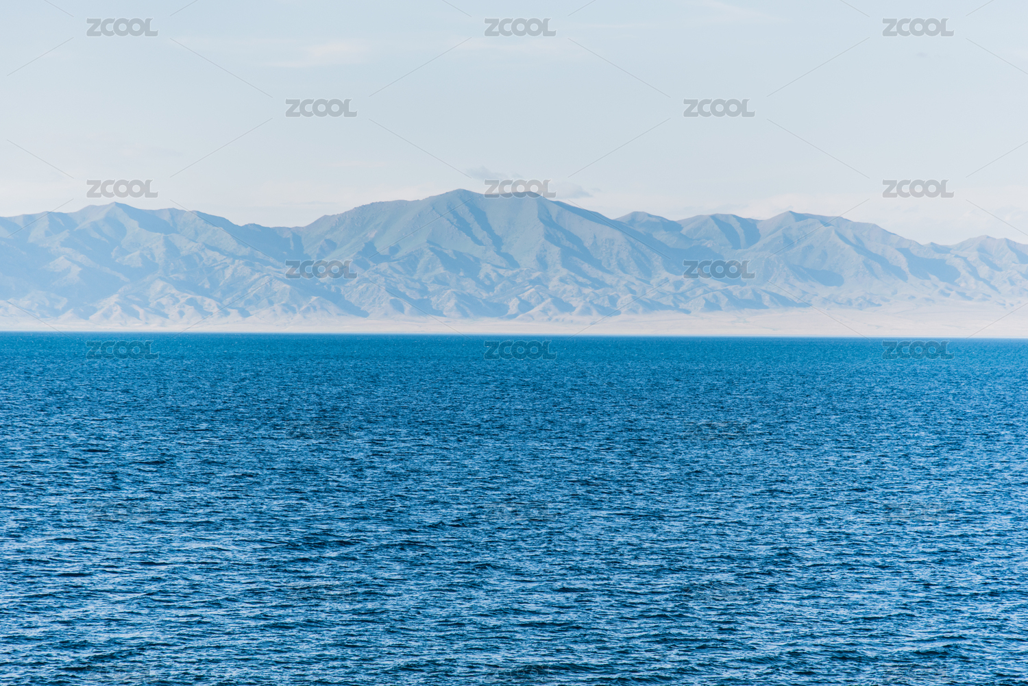 中国新疆赛里木湖水面湖水与群山蓝天风景