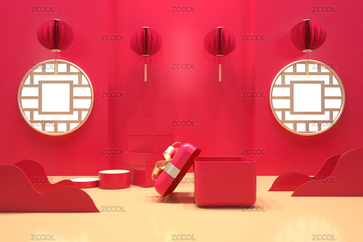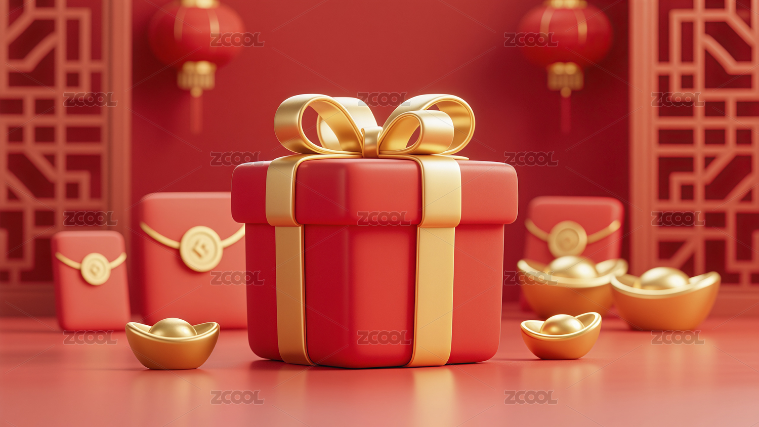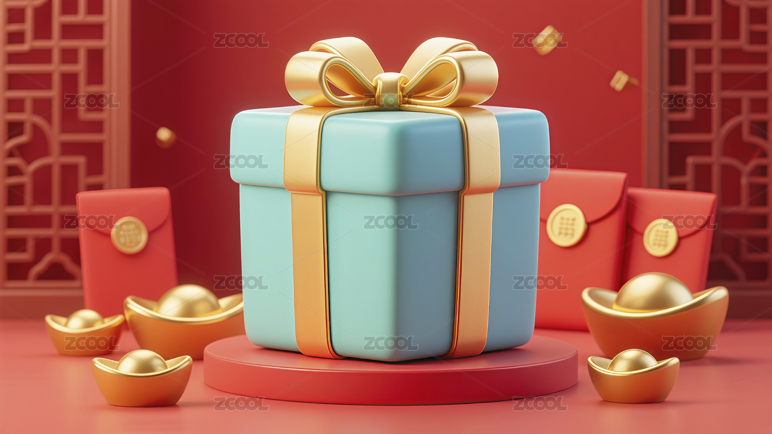 3D,喜庆,节日,卡通,中国风,庆祝,新年,电商,盒子,礼品