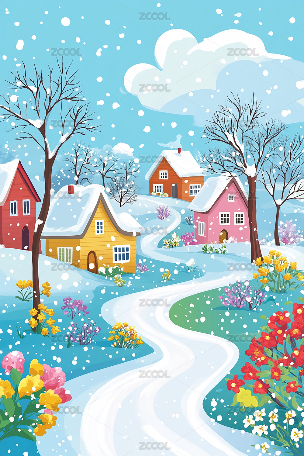 房屋,冬天,户外,城市,建筑,雪,手绘,平坦的,夜晚,背景