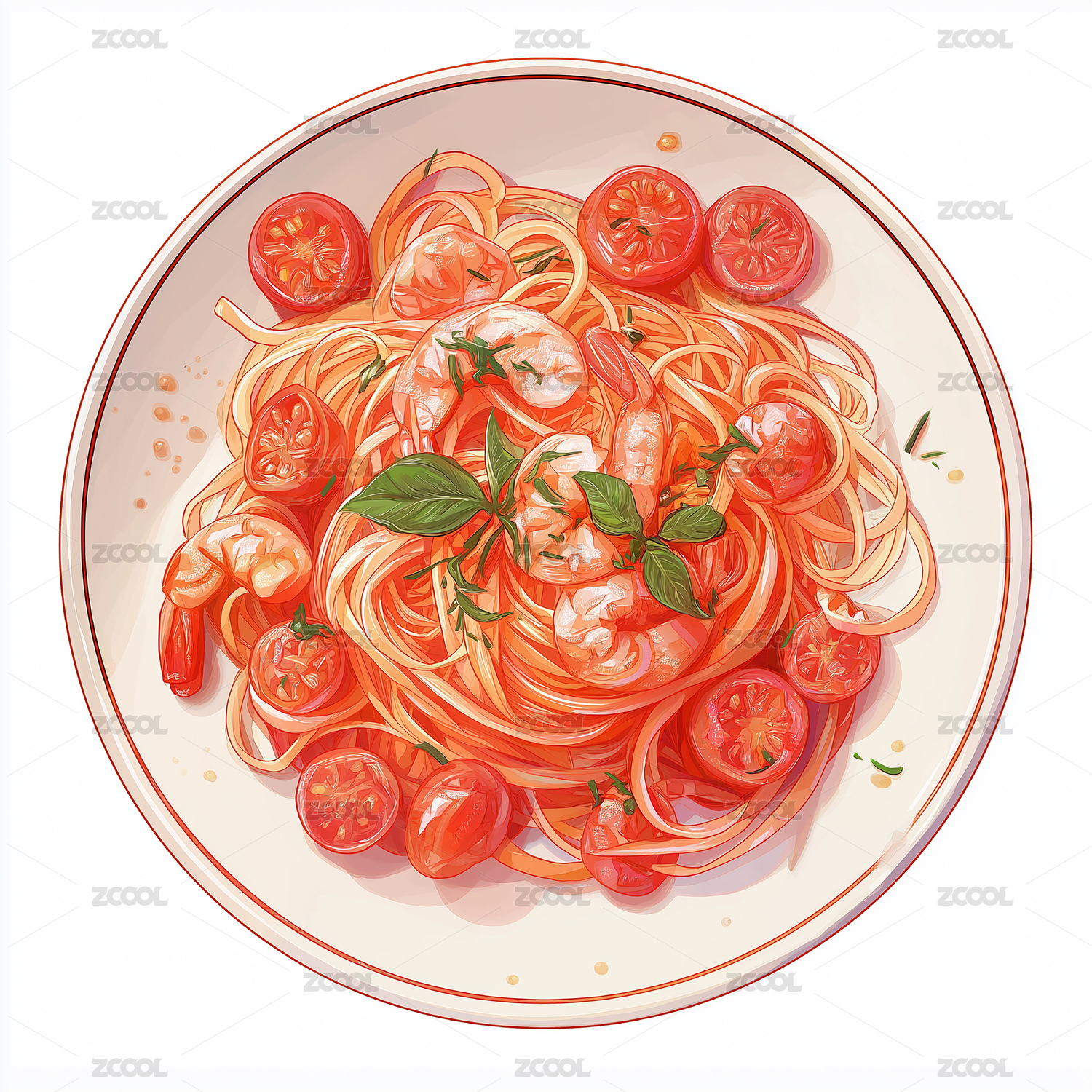 插画,食品,插图,西红柿,顶视图,食物,面条,面,西餐,盘子