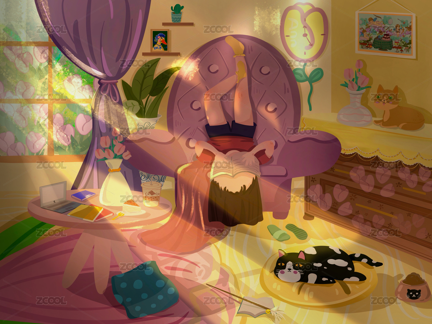猫,陪伴,小朋友,儿童插画,绘本,儿童房,幼儿,跳舞,小丑,舞蹈