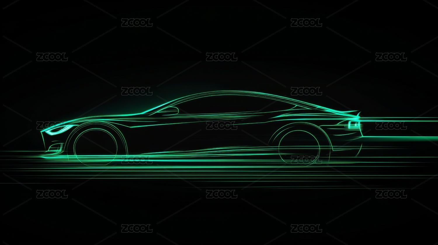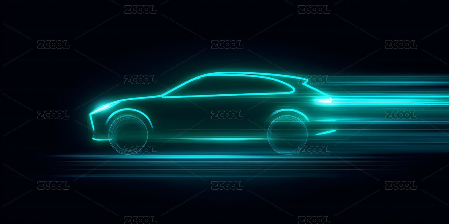 赛博朋克科技未来汽车抽象霓虹发光概念插图