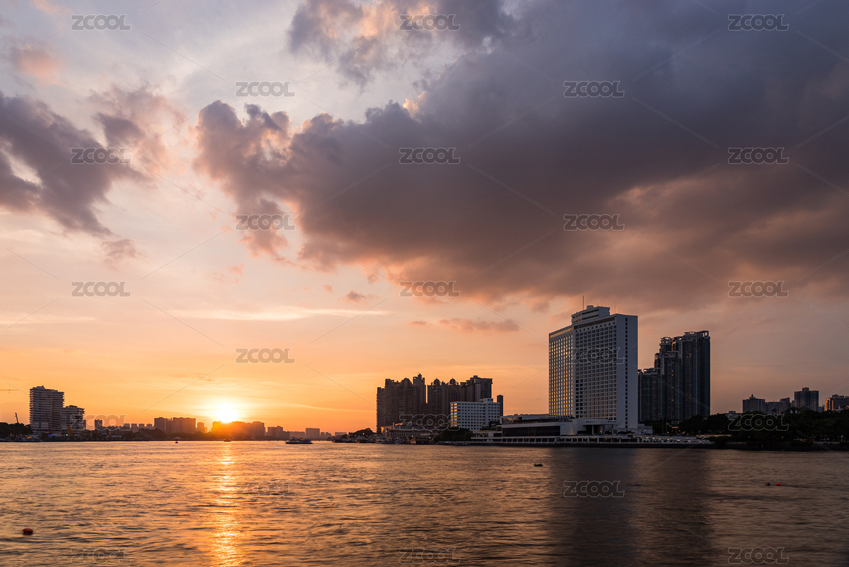中国广州珠江沙面白天鹅宾馆夕阳晚霞