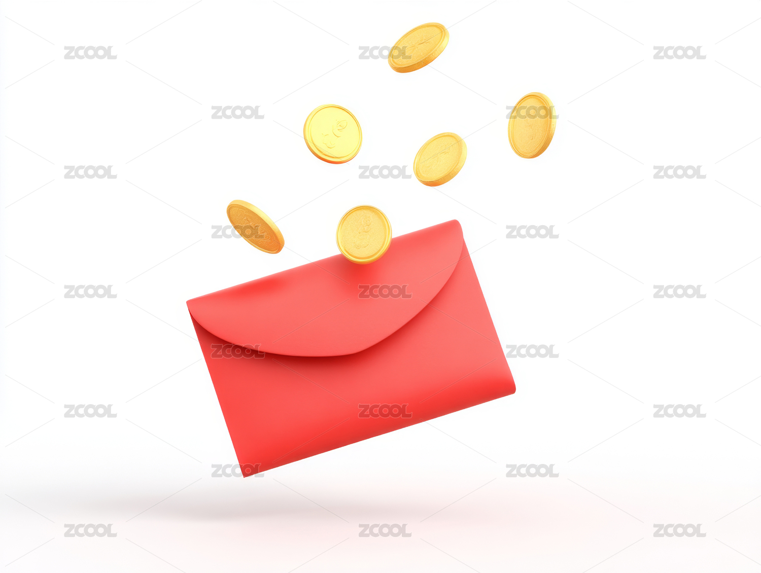 3D春节压岁钱红包金钱金融钱袋喜庆手拿红