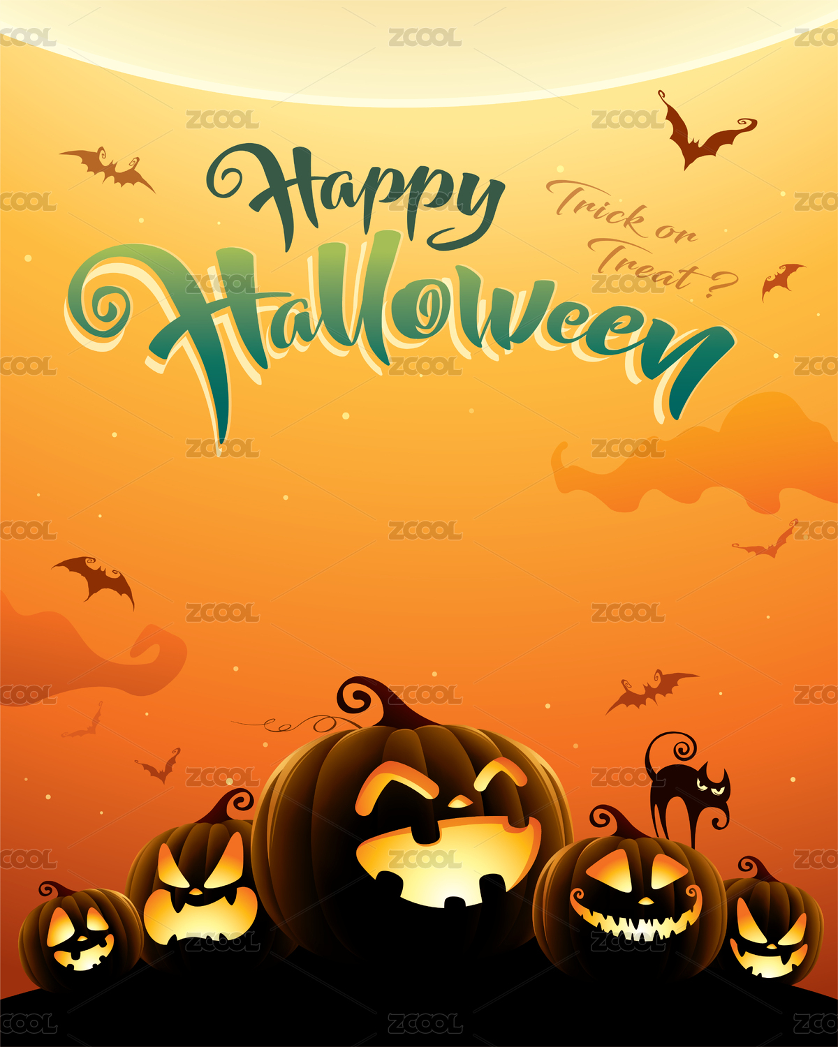 万圣节快乐黑色南瓜杰克灯笼手拿小展板