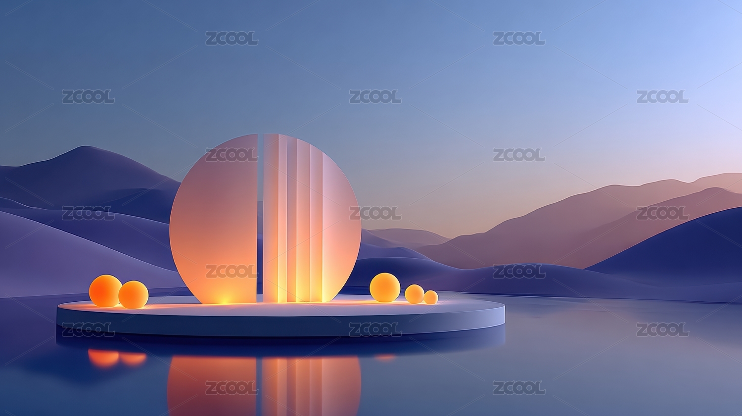 沙漠戈壁滩地形与发光科技平台产品展台背景