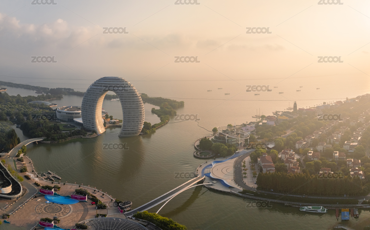 中国江苏无锡太湖之星摩天轮航拍城市风光
