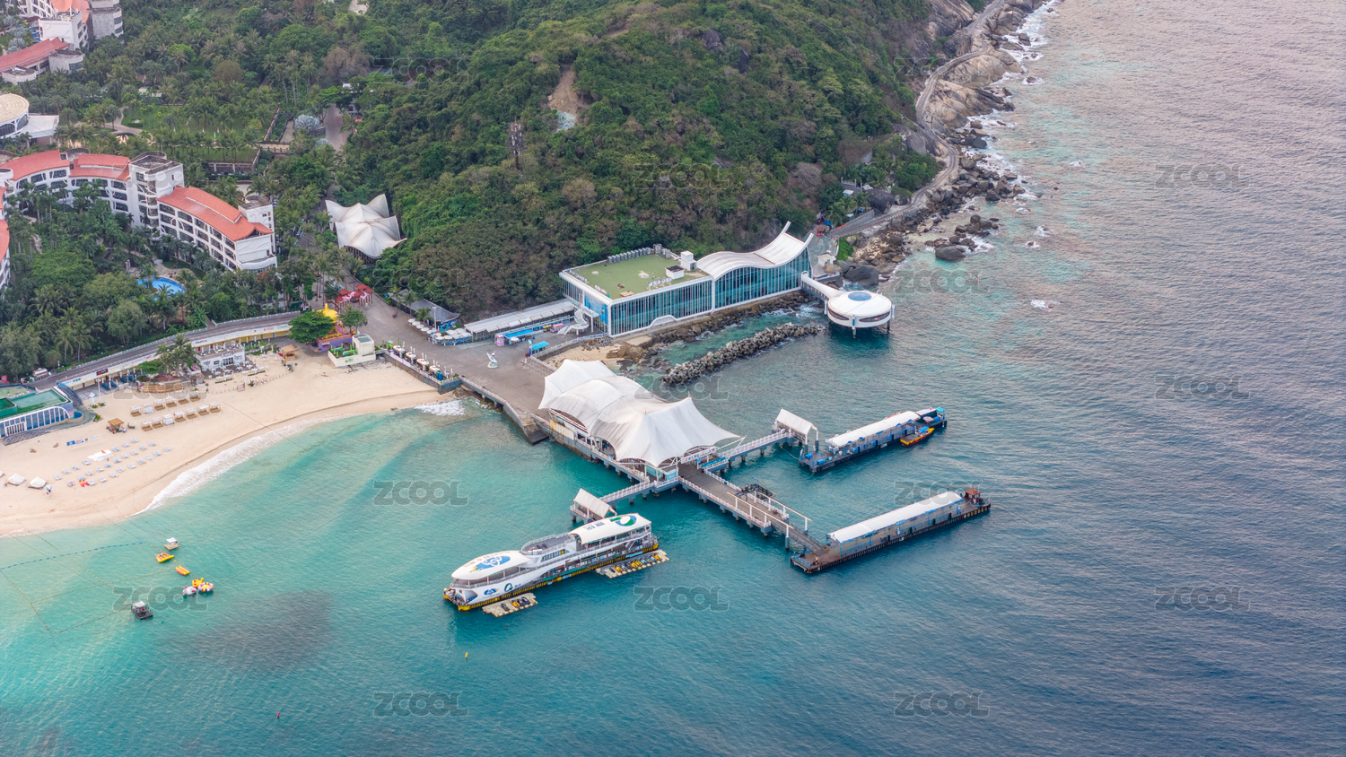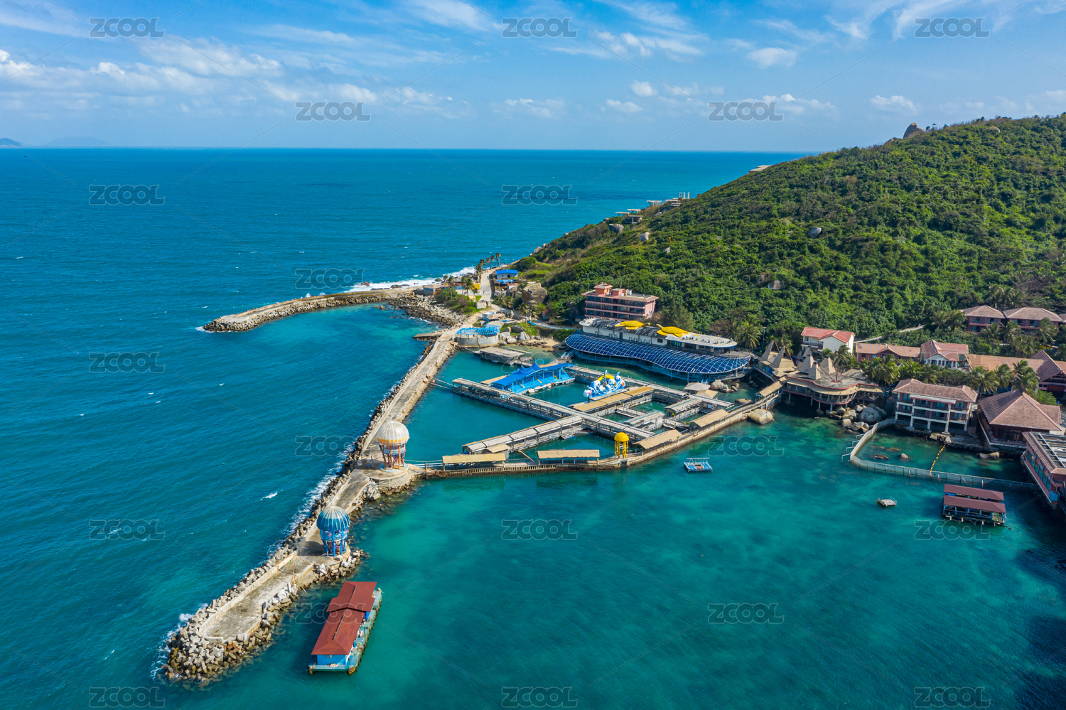 航拍海南陵水分界洲岛海洋剧场海洋生物馆区