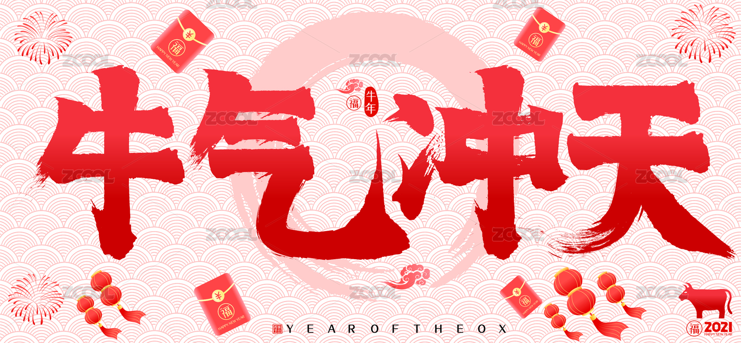 2021牛气冲天牛年红包鞭炮矢量书法字
