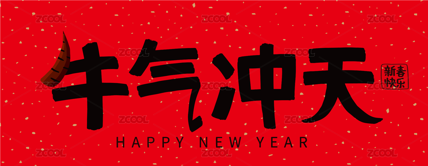 2021牛气冲天牛年新年快乐毛笔手写字形
