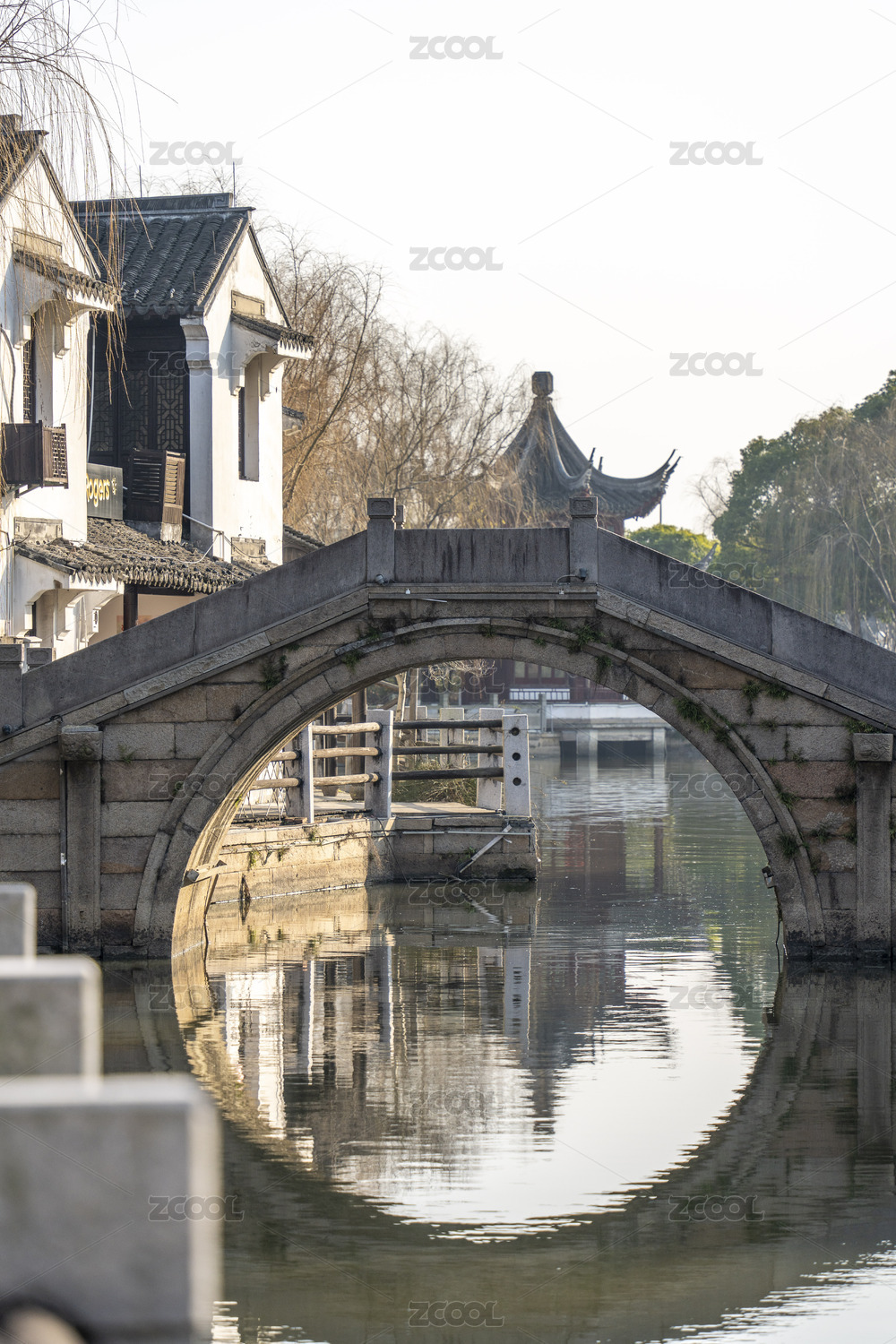 中国上海闵行召稼楼古镇水乡自然景观风光
