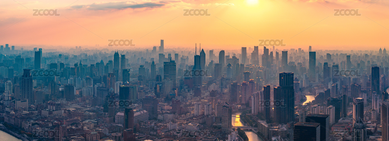 上海黄浦江日出城市风光