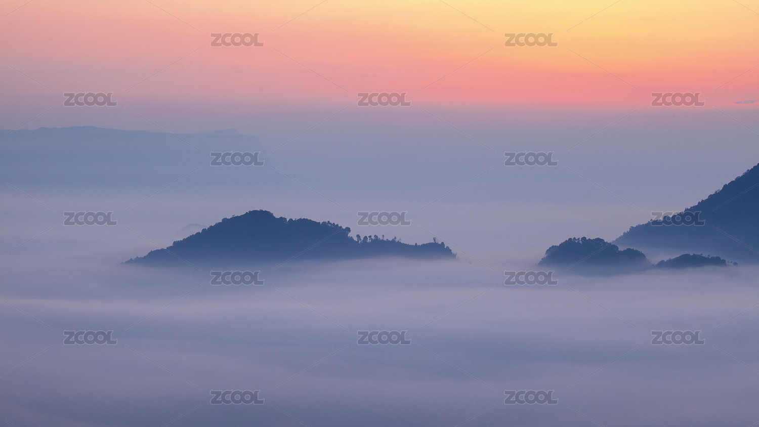 四川宜宾蜀南竹海朝霞晨雾云海缭绕山脉