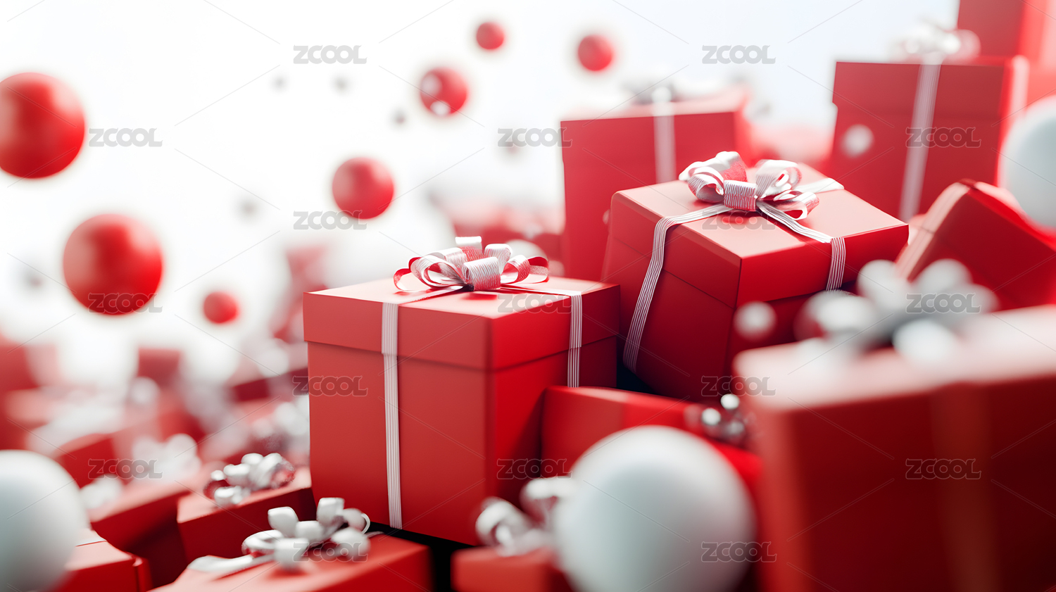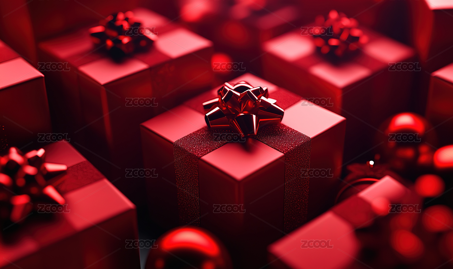 红色,元素,礼品盒,彩带,众多,喜庆,节日,新年,元旦,春节