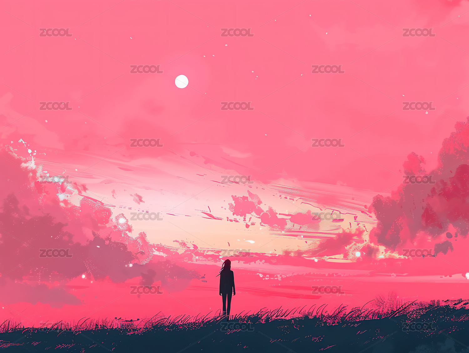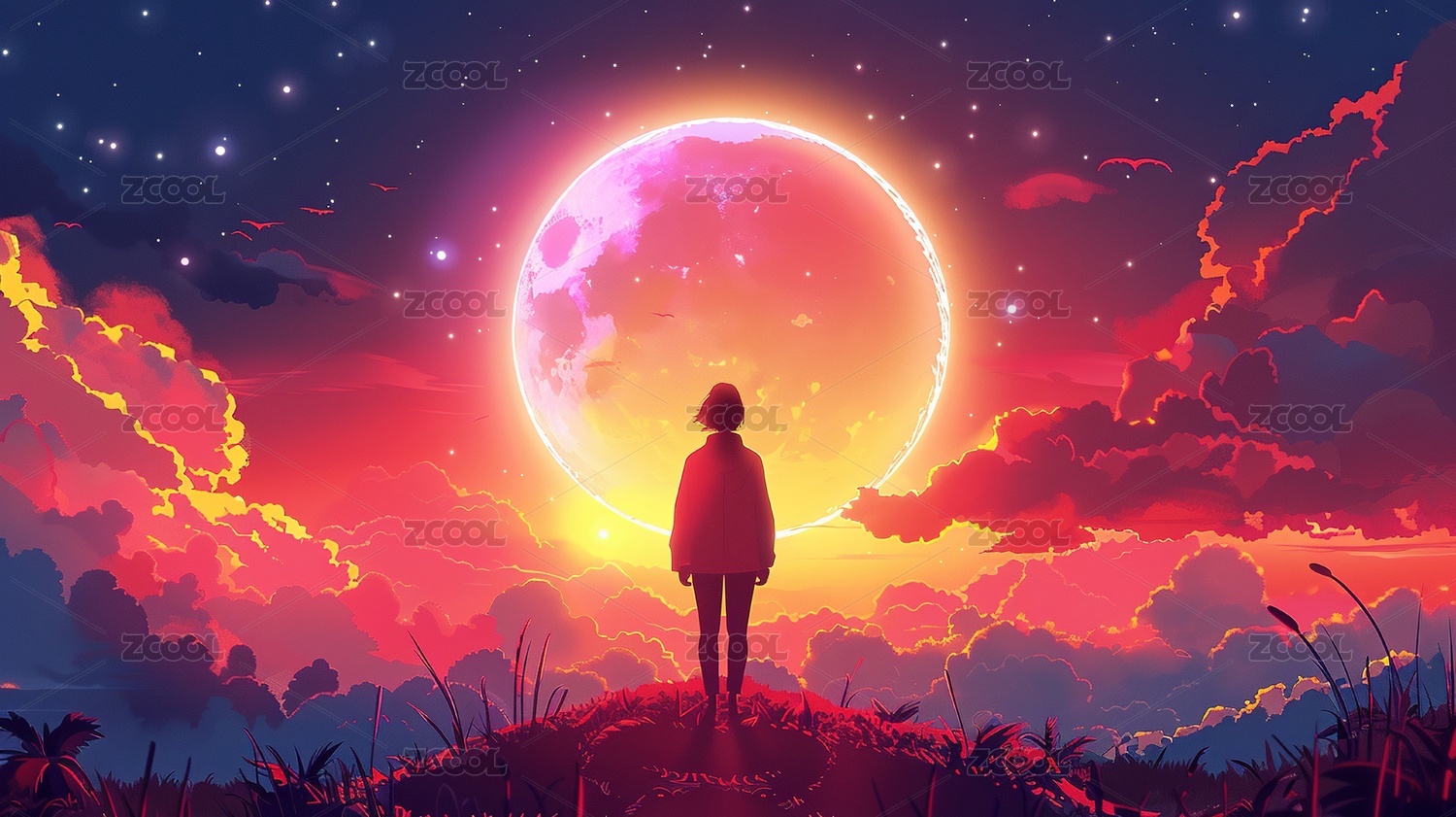 超现实,风景,人物,剪影,背景,背影,太阳,光,地形,户外