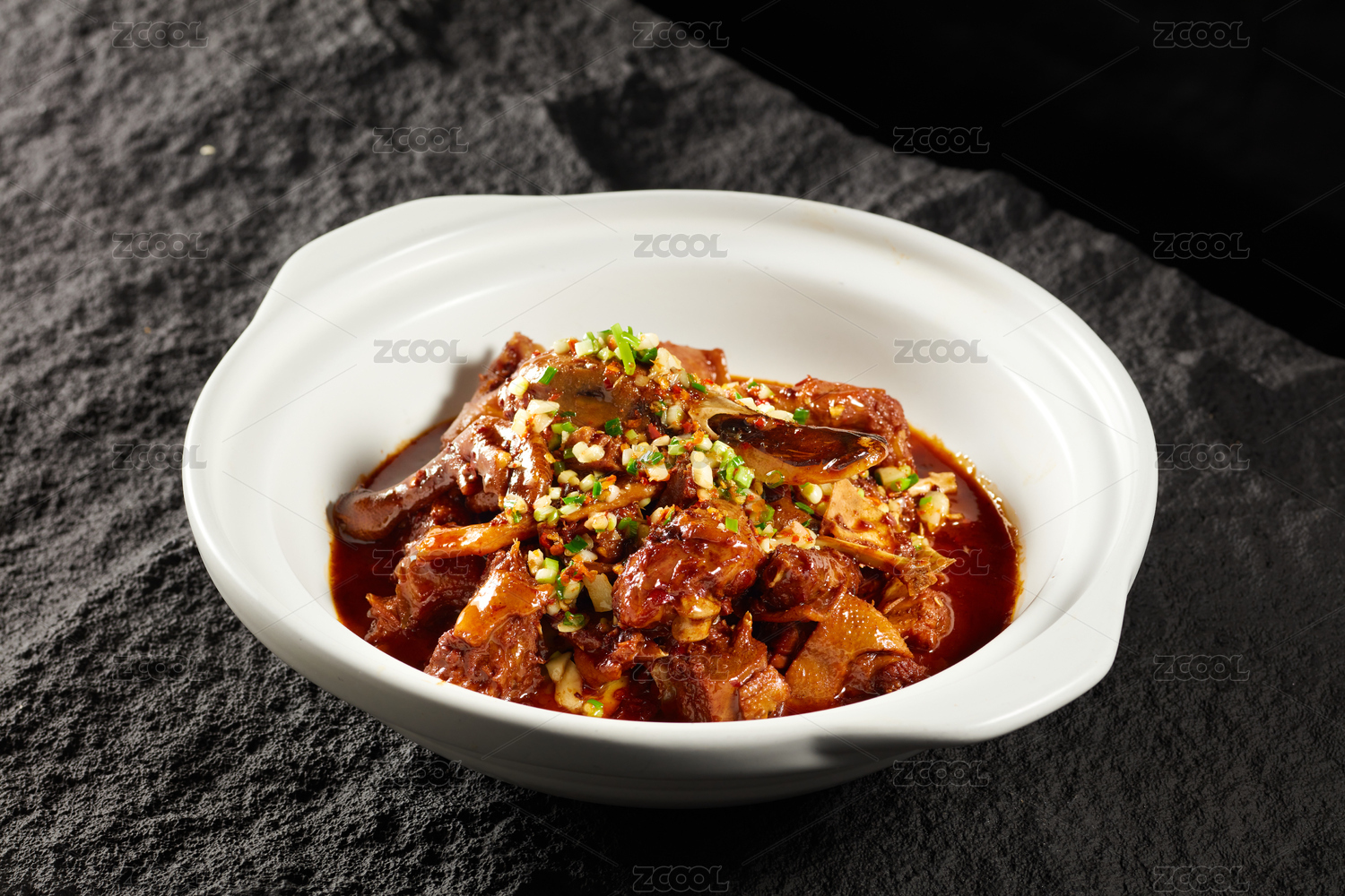 圆形白色瓷盘装的凉拌美味卤猪蹄