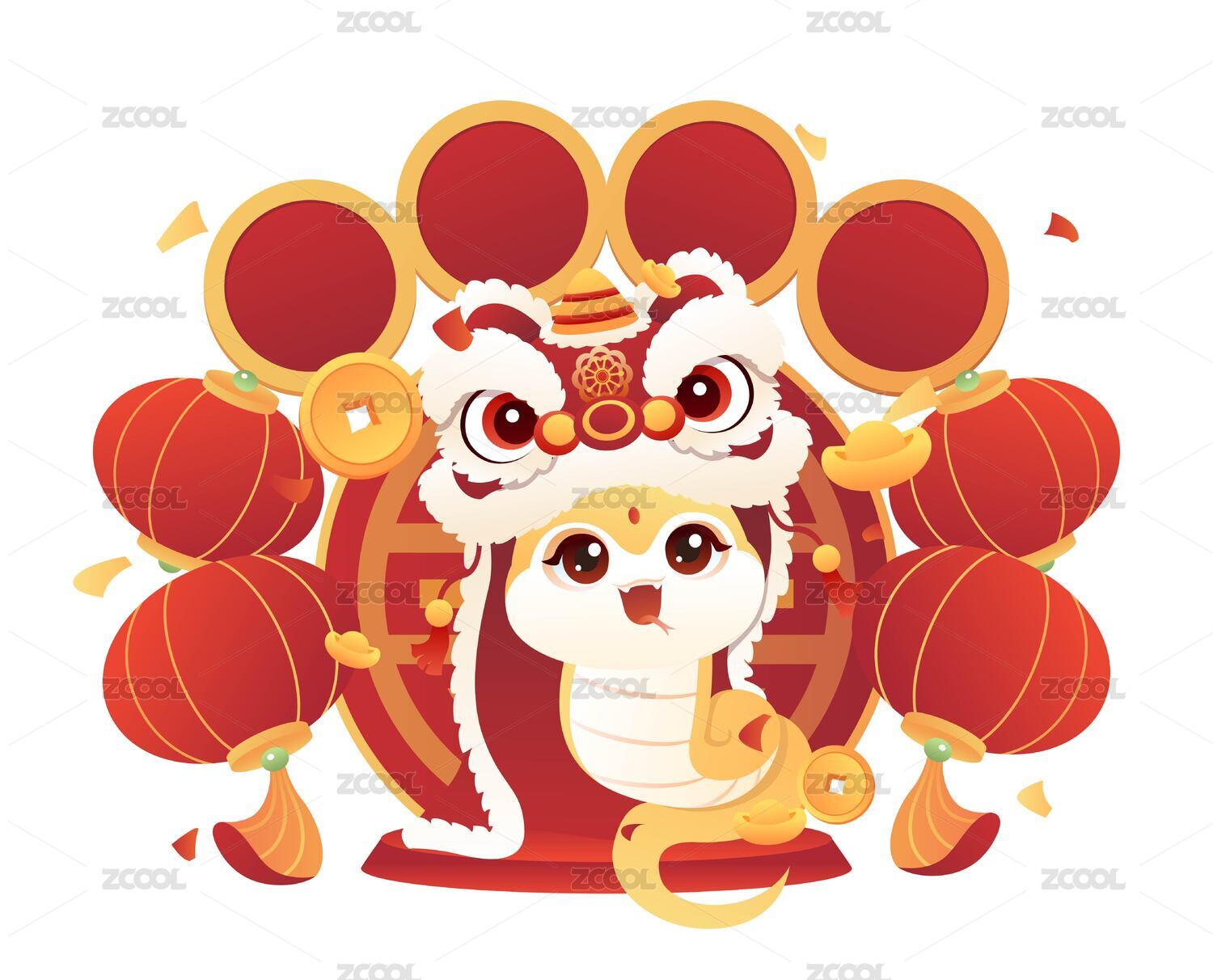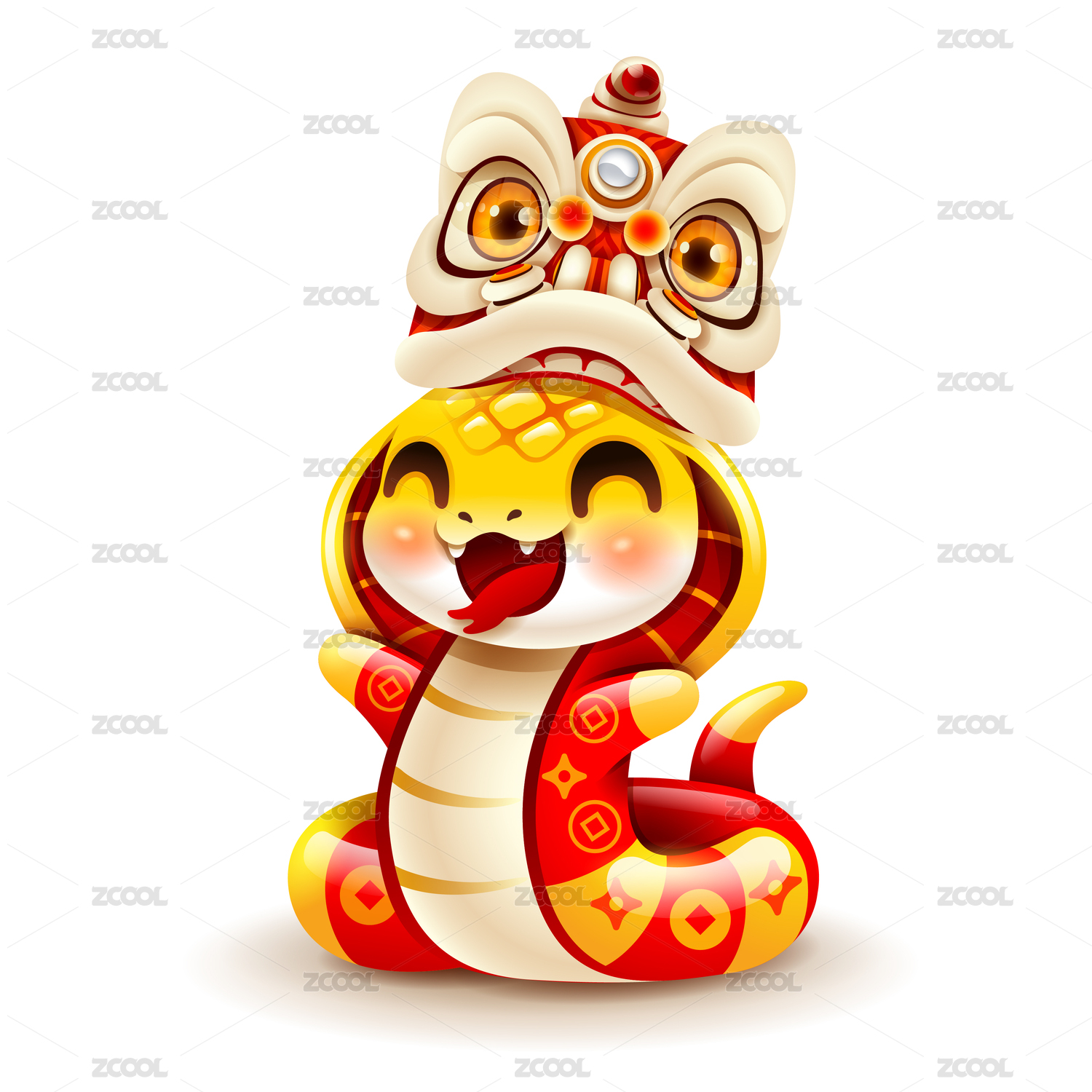 春节可爱卡通蛇与舞狮头