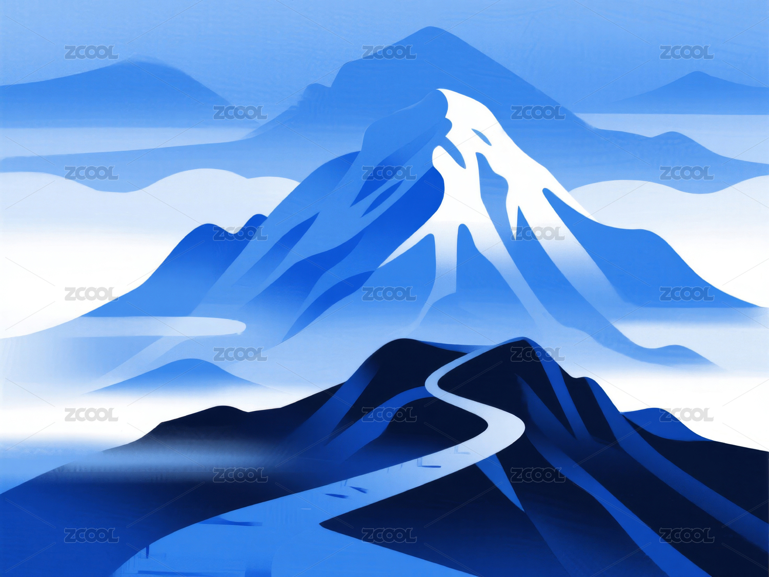 蓝色的山川河流背景图