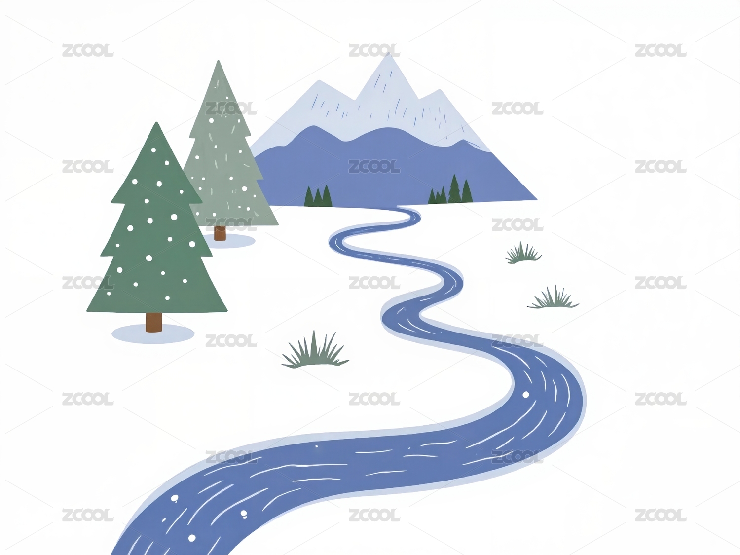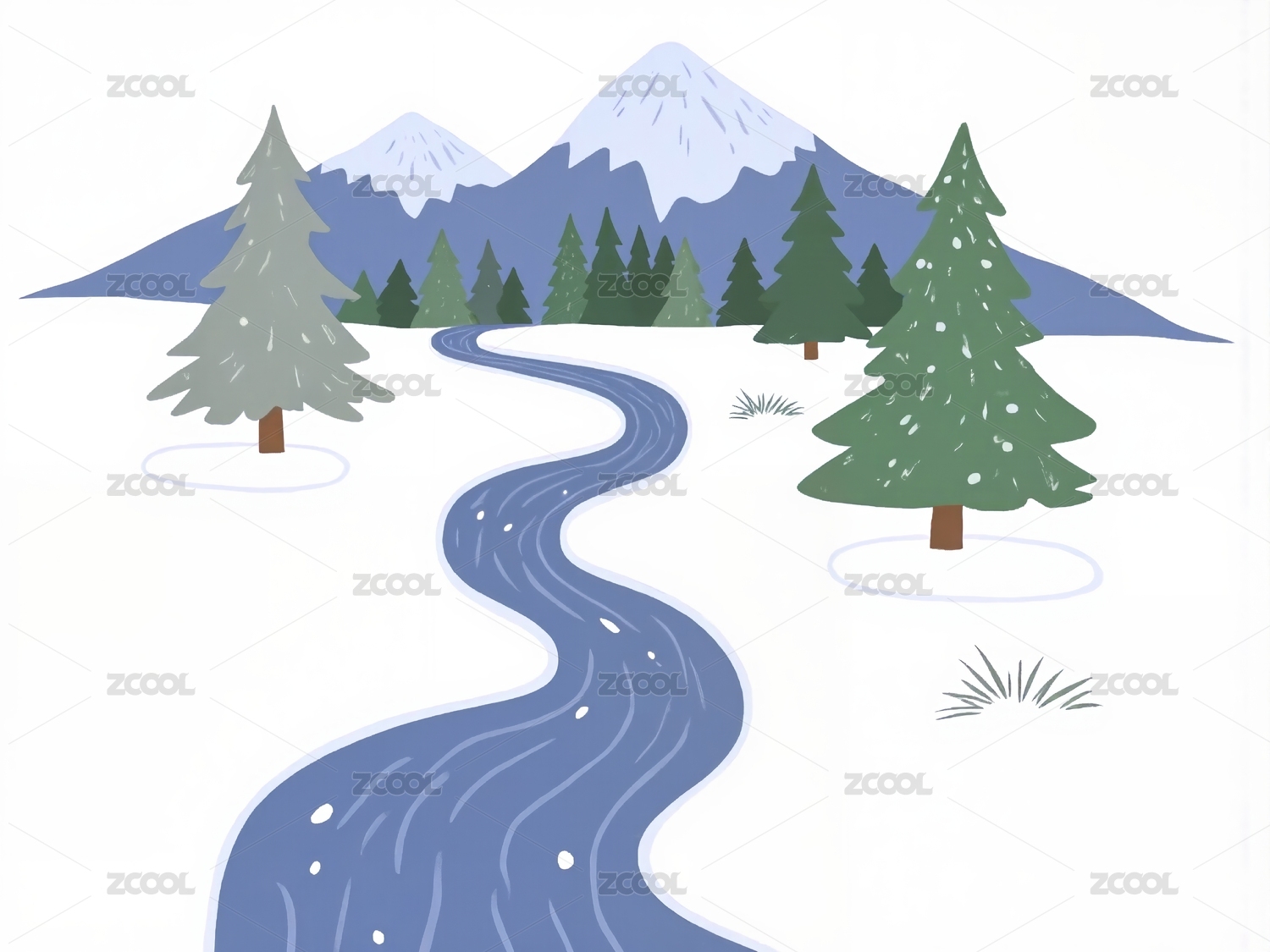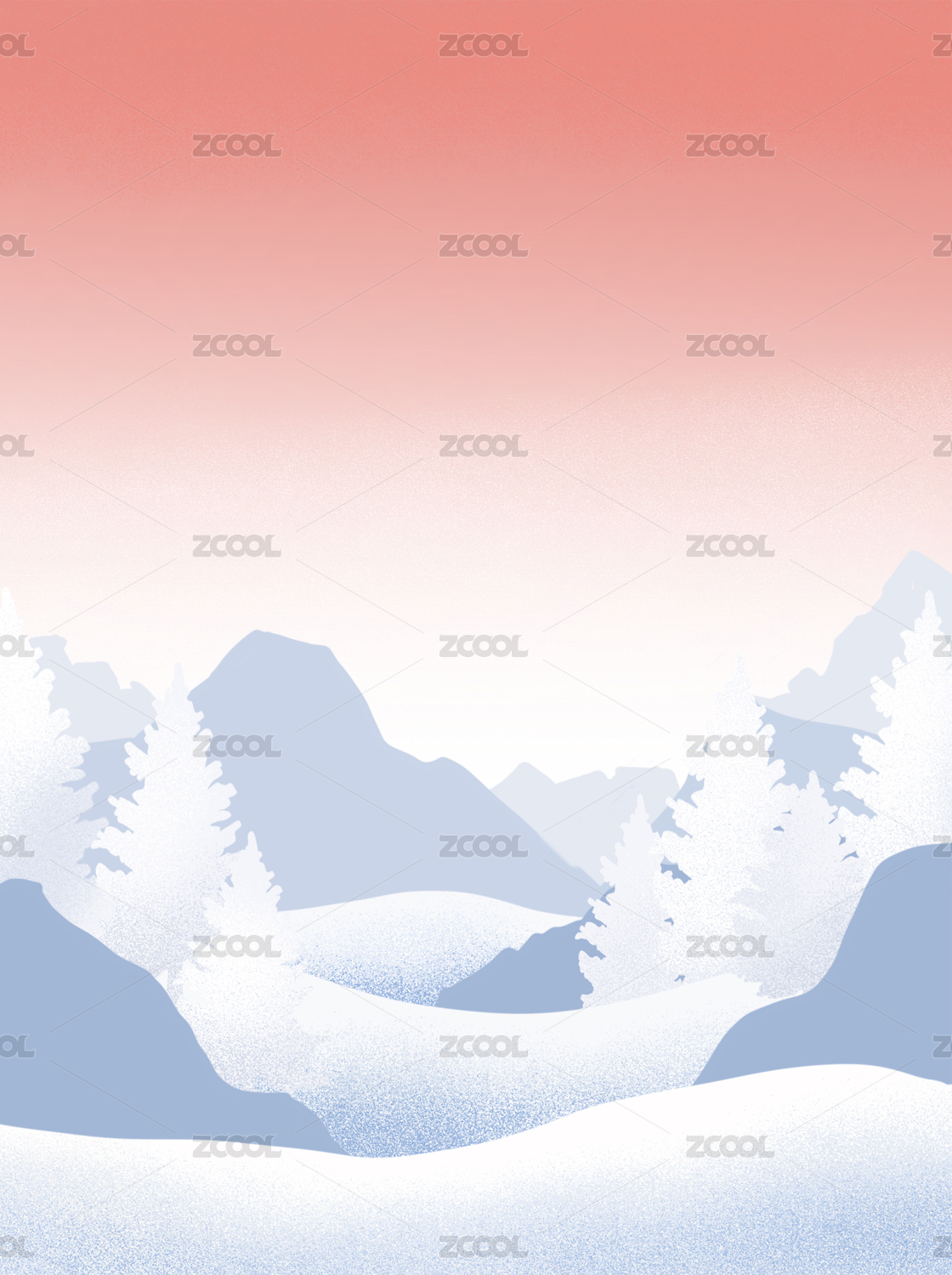 冬天群山雪景插画