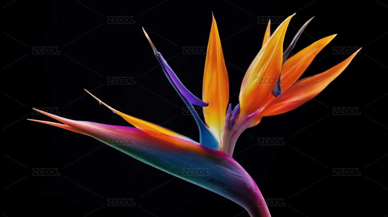 黑色背景前的天堂鸟