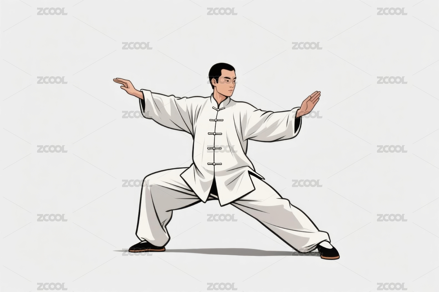 两位老年人在打太极 可爱风格重阳节老年人健康生活插画