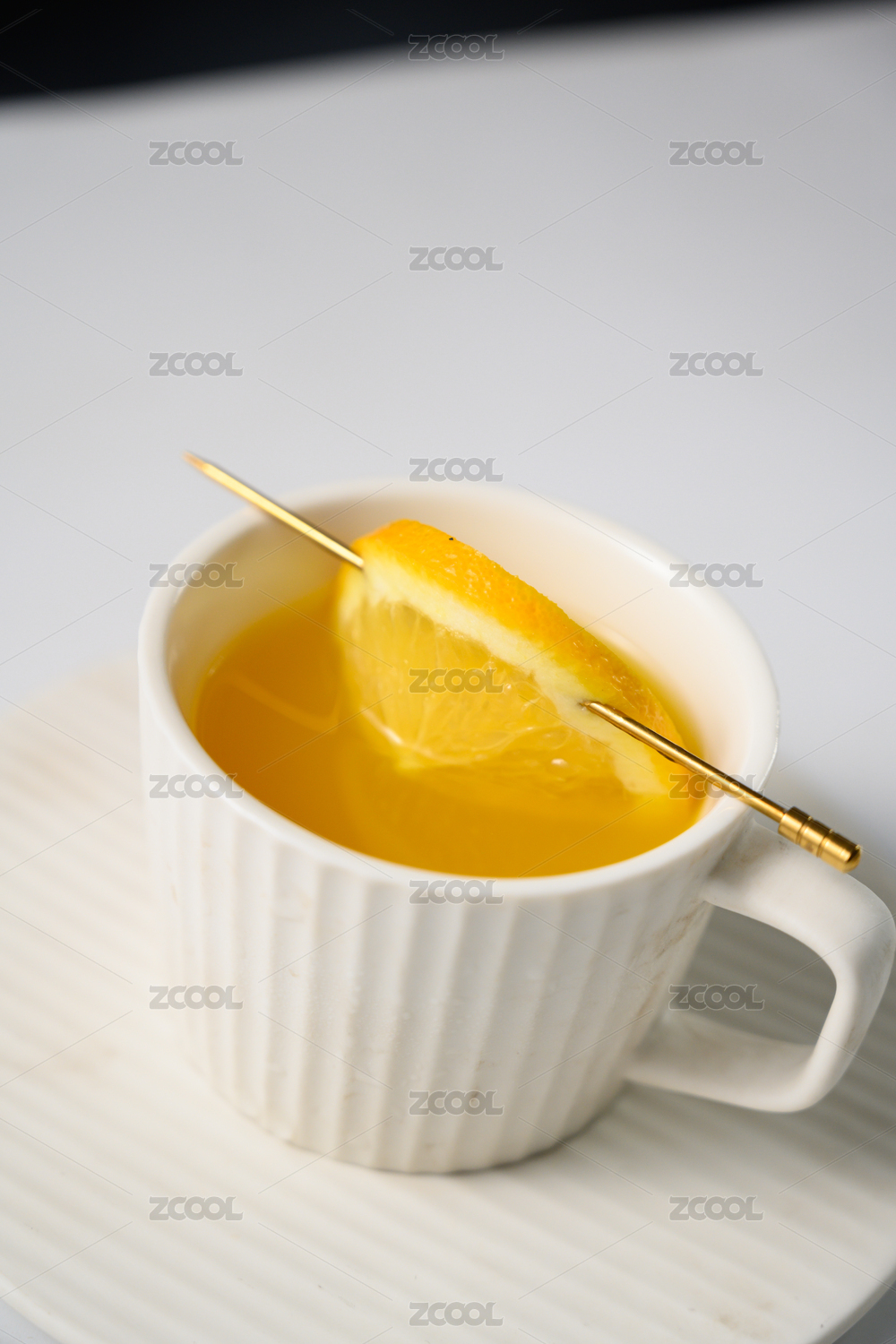 特写拍摄白瓷盖碗里的柠檬绿茶