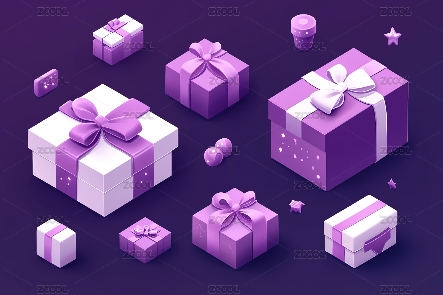 礼盒,盒子,粉色,紫色,礼物,节日,包装,装饰,3D,三维图形